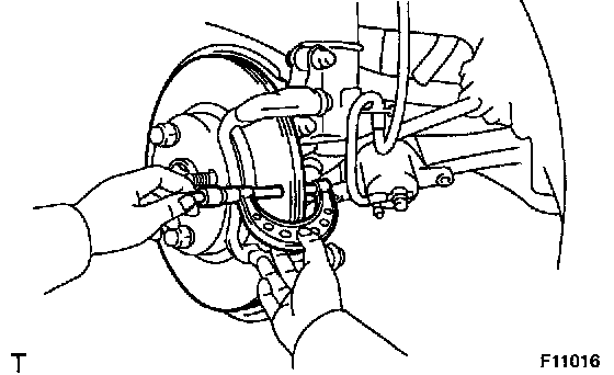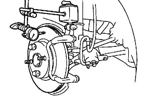 If the disc's runout is maximum value or greater, check the bearing play in the axial direction and check the axle hub runout. If the bearing play and axle hub runout are not abnormal, adjust the disc runout or grind it on a "On-Car" brake lathe.