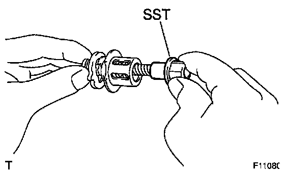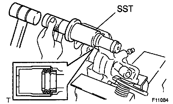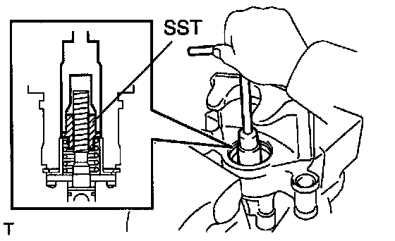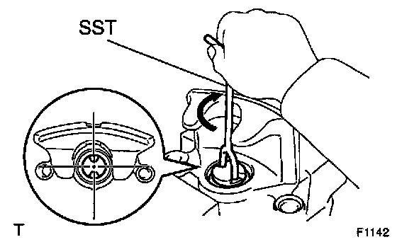 ^ To insure safety, always use SST as there is a possibility of the spring flying out, causing injury or damaging to the interior surface of the cylinder.