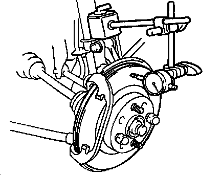 Using a dial indicator, measure disc runout at a position 10 mm (0.39 inch) from the outside edge.