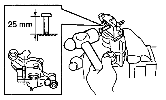 Tap in the pin to the brake cylinder until the stopper pin extends 25 mm (0.98 inch).