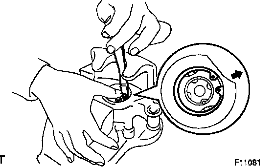 If the disc's runout is at the maximum value or greater, check the bearing play is in the axial direction and check the axle hub run-out. If the bearing play and axle hub runout are not abnormal, adjust the disc runout or grind it on a "On-Car" brake lathe.