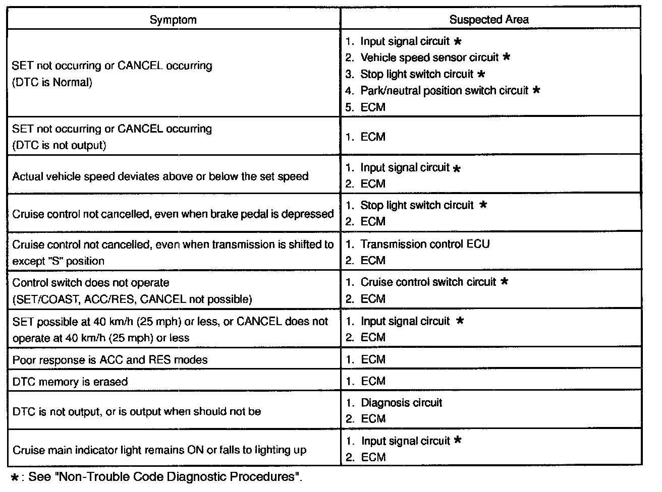 Problem Symptoms Table: