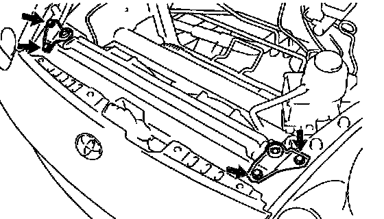 d. Remove the 4 bolts and 2 radiator upper supports.