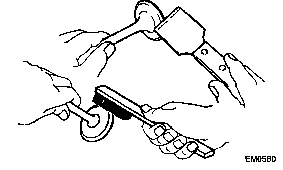 d. Using a valve guide bushing brush and solvent, clean all the guide bushings.