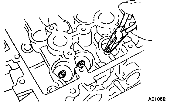 a. Using a caliper gauge, measure the lifter bore diameter of the cylinder head.