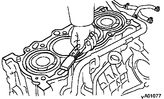 a. Using a gasket scraper, remove all the gasket material from the cylinder block contact surface.