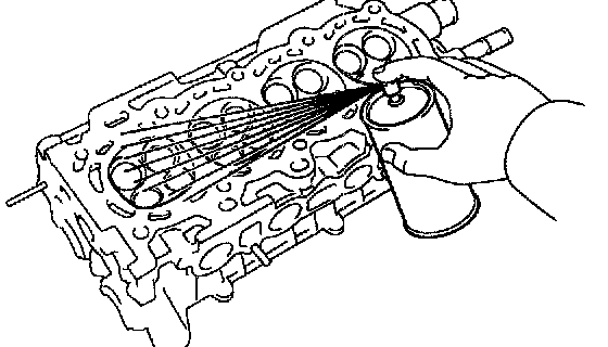 b. Inspect for cracks. Using a dye penetrate, check the combustion chamber, intake ports, exhaust ports and cylinder block surface for cracks.