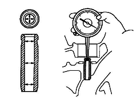 c. Using a caliper gauge, measure the bushing bore diameter of the cylinder head.