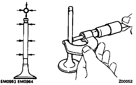 6. INSPECT VALVE STEMS AND GUIDE BUSHINGS