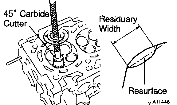 a. Using a 45° carbide cutter, resurface the valve seats. Remove only enough metal to clean the seats.