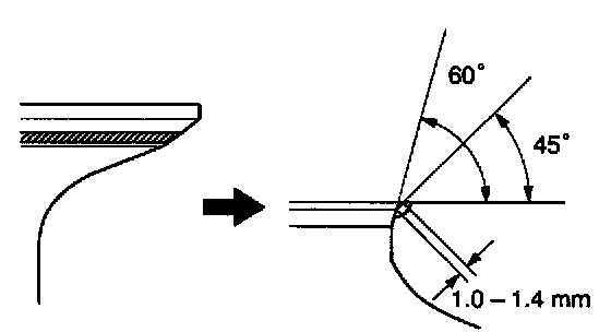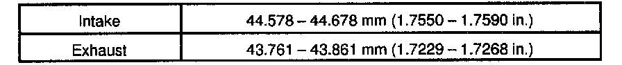 - Check that the seat contact is in the middle of the valve face with the following width: 1.0 - 1.4 mm (0.039 - 0.055 inch)