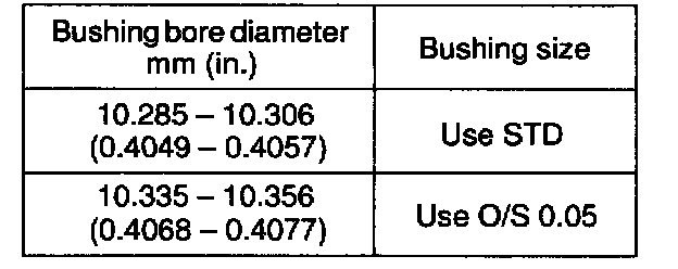 If the bushing bore diameter of the cylinder head is greater than 10.306 mm (0.4057 inch), machine the bushing bore to the following dimension: 10.335 - 10.356 mm (0.4068 - 0.4077 inch). If the bushing bore diameter of the cylinder head is greater than 10.356 mm (0.4077 inch), replace the cylinder head.