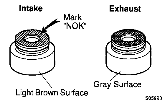 HINT: The intake valve oil seal is light brown and the exhaust valve oil seal is gray.