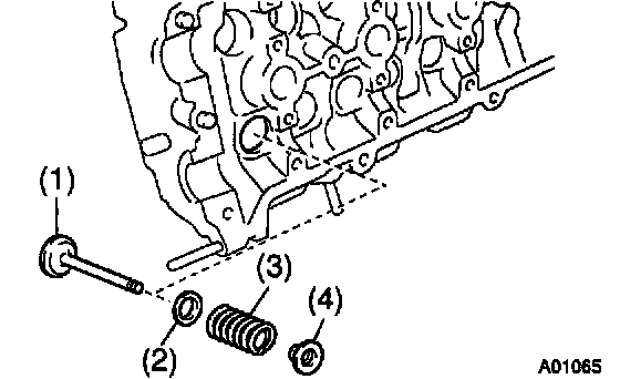 b. Install the valve (1), spring (2), valve spring (3) and spring retainer (4).