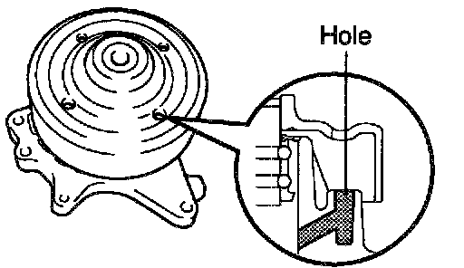 Visually check the drain hole for coolant leakage. If leakage is found, replace the water pump.