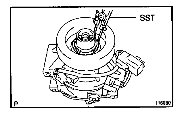 NOTE: Be careful not to damage the pulley when tapping on the rotor.