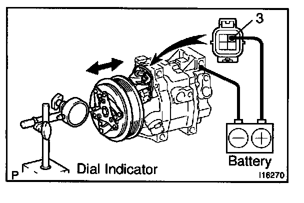 a. Set the dial indicator to the pressure plate of the magnetic clutch.