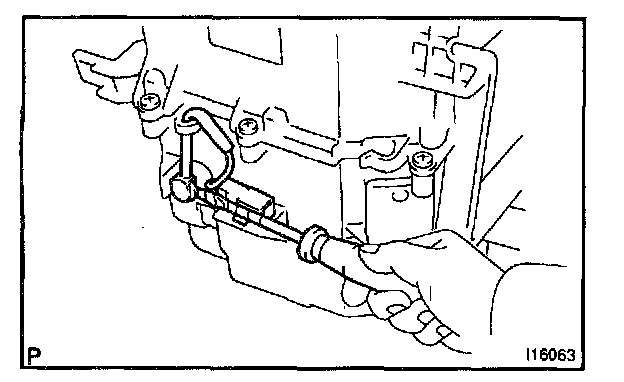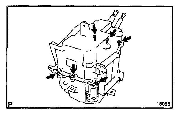 Using a 5 mm hexagon wrench, remove the 2 bolts, and separate the expansion valve and evaporator.
