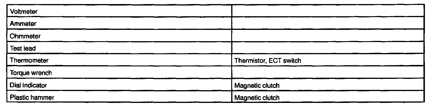 Air Conditioning - Recommended Tools: