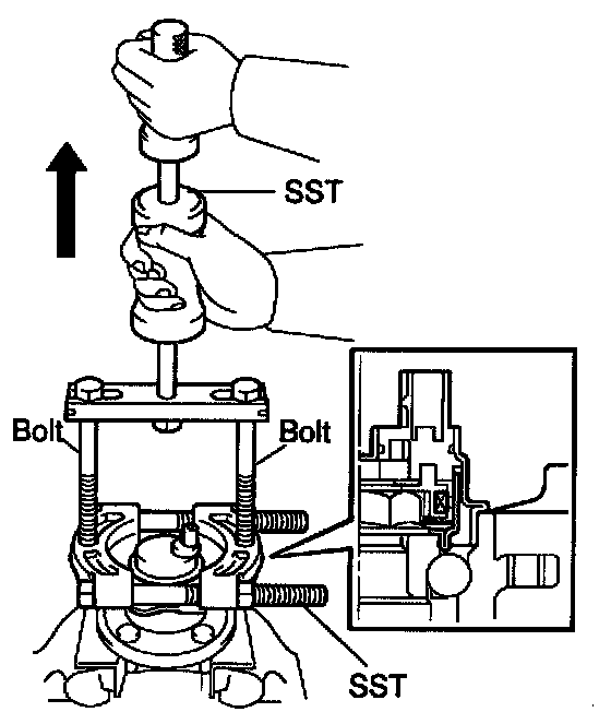 c. Using SST and 2 bolts (Diameter: 12 mm, Pitch: 1.5 mm), remove the ABS speed sensor.