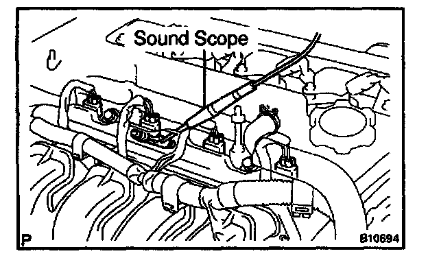 1. With the engine running or cranking, use a sound scope to check that there is normal operating noise in proportion to the engine speed.