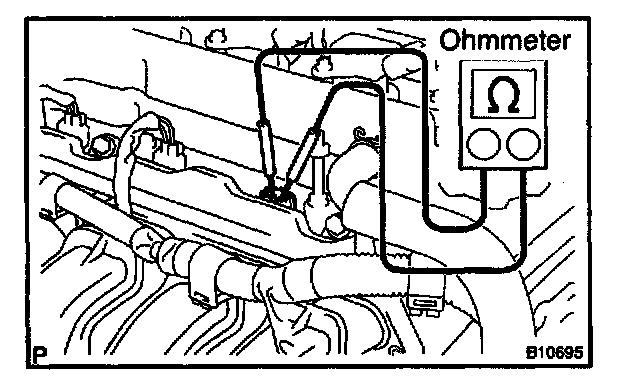 If the resistance is not as specified, replace the injector.