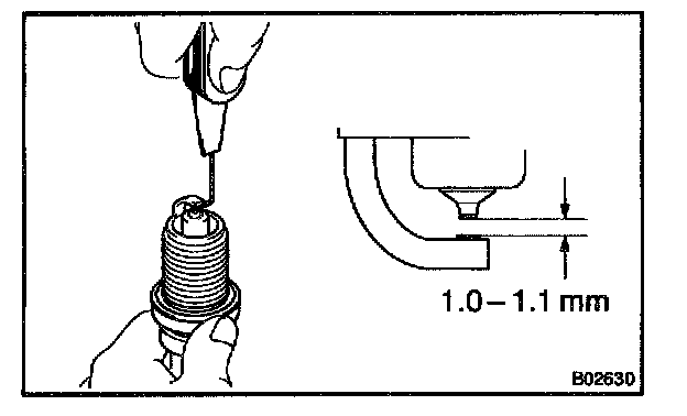 NOTE: When adjusting the gap of a new spark plug, bend only the base of the ground electrode. Do not touch the tip. Never attempt to adjust the gap on a used plug.