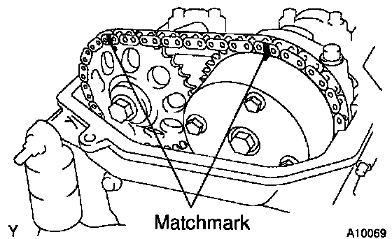 n. Check that the matchmarks on the timing chain and 2 timing sprockets.