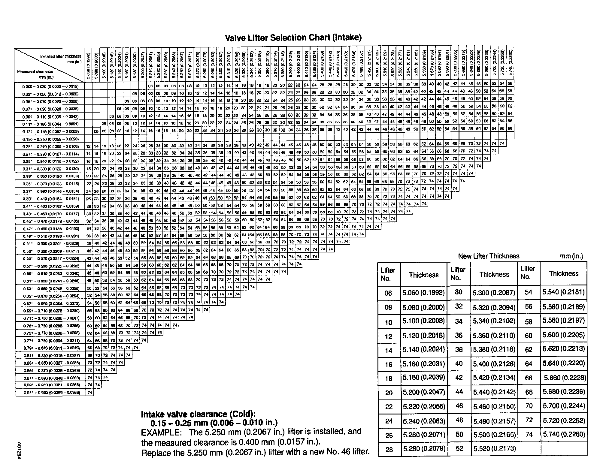 HINT: Lifters are available in 35 sizes in increments of 0.020 mm (0.0008 inch), from 5.060 mm (0.1992 inch) to 5.740 mm (0.2260 inch).
