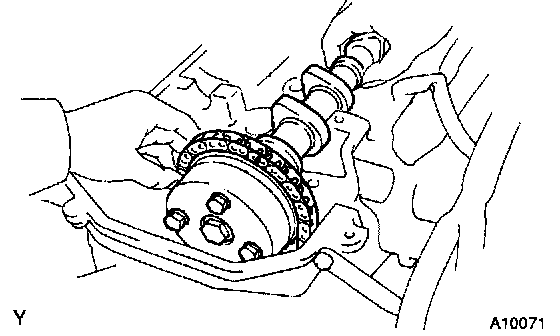 2) Remove the 2 camshaft and timing sprocket assemblies.