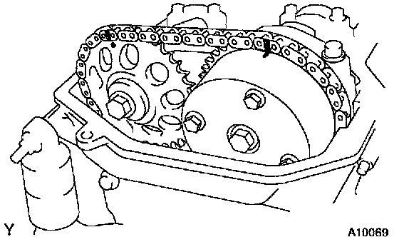 b. Place matchmarks on the timing chain and camshaft timing sprockets.