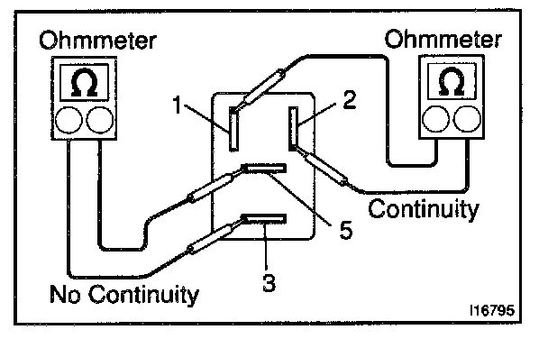 2) Using an ohmmeter, check that there is continuity between terminals 3 and 5.