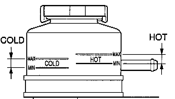HINT: Check that the fluid level is within the HOT LEVEL range on the reservoir. If the fluid is cold, check that it is within the COLD LEVEL range.