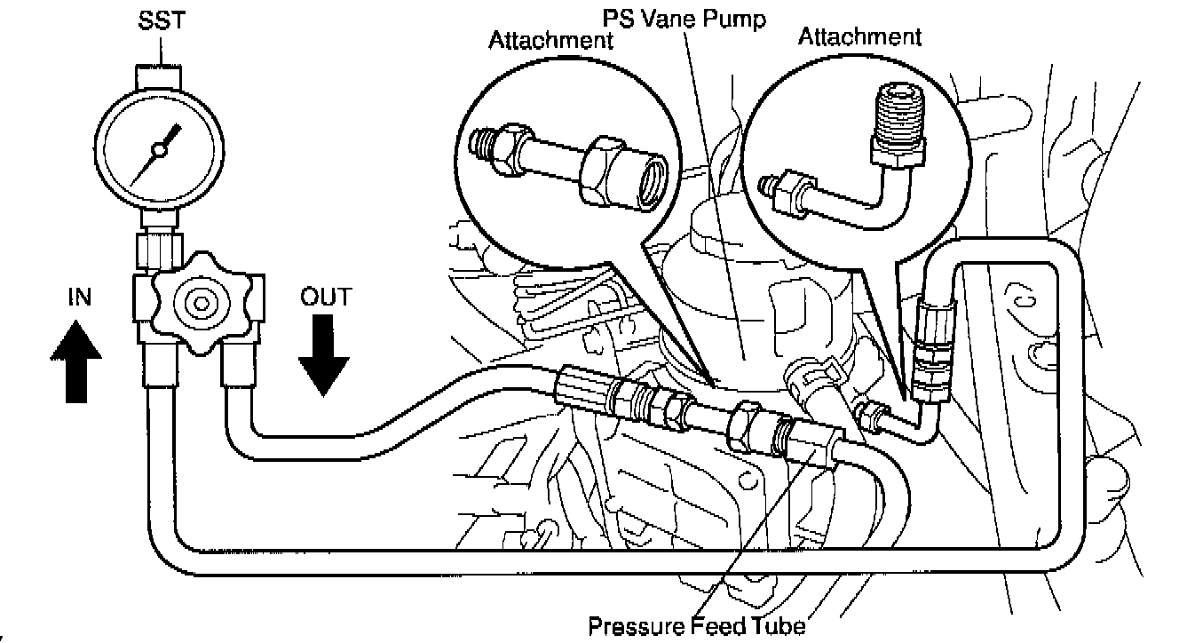 f. With the engine idling, close the valve of the SST and observe the reading on the SST.