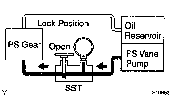 g. With the engine idling and valve fully opened, turn the steering wheel to full lock.