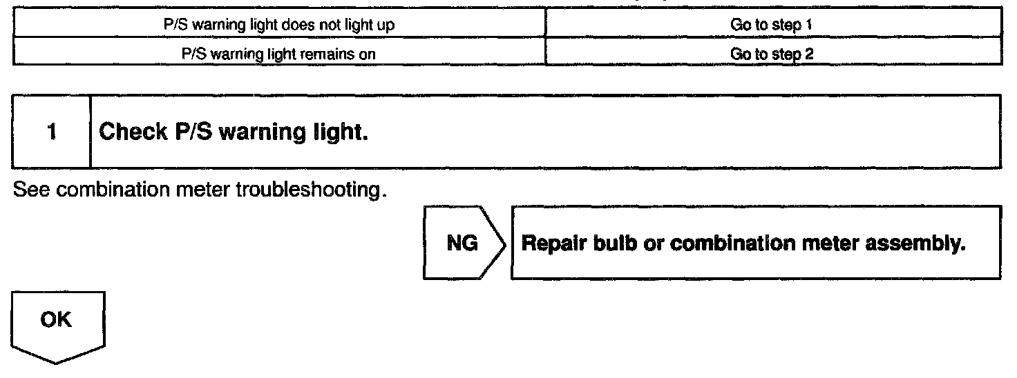 CIRCUIT DESCRIPTIONIf the ECU detects trouble, it lights the P/S warning light while at the same time prohibiting PS control. At this time, the ECU records a DTC in memory.