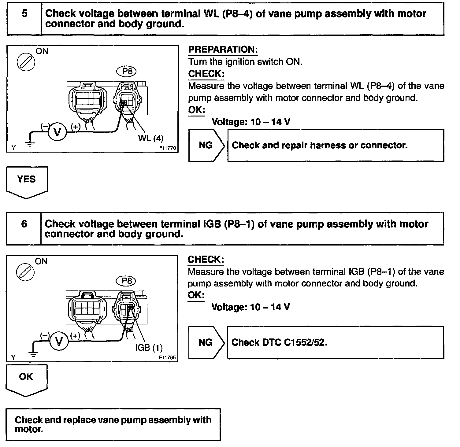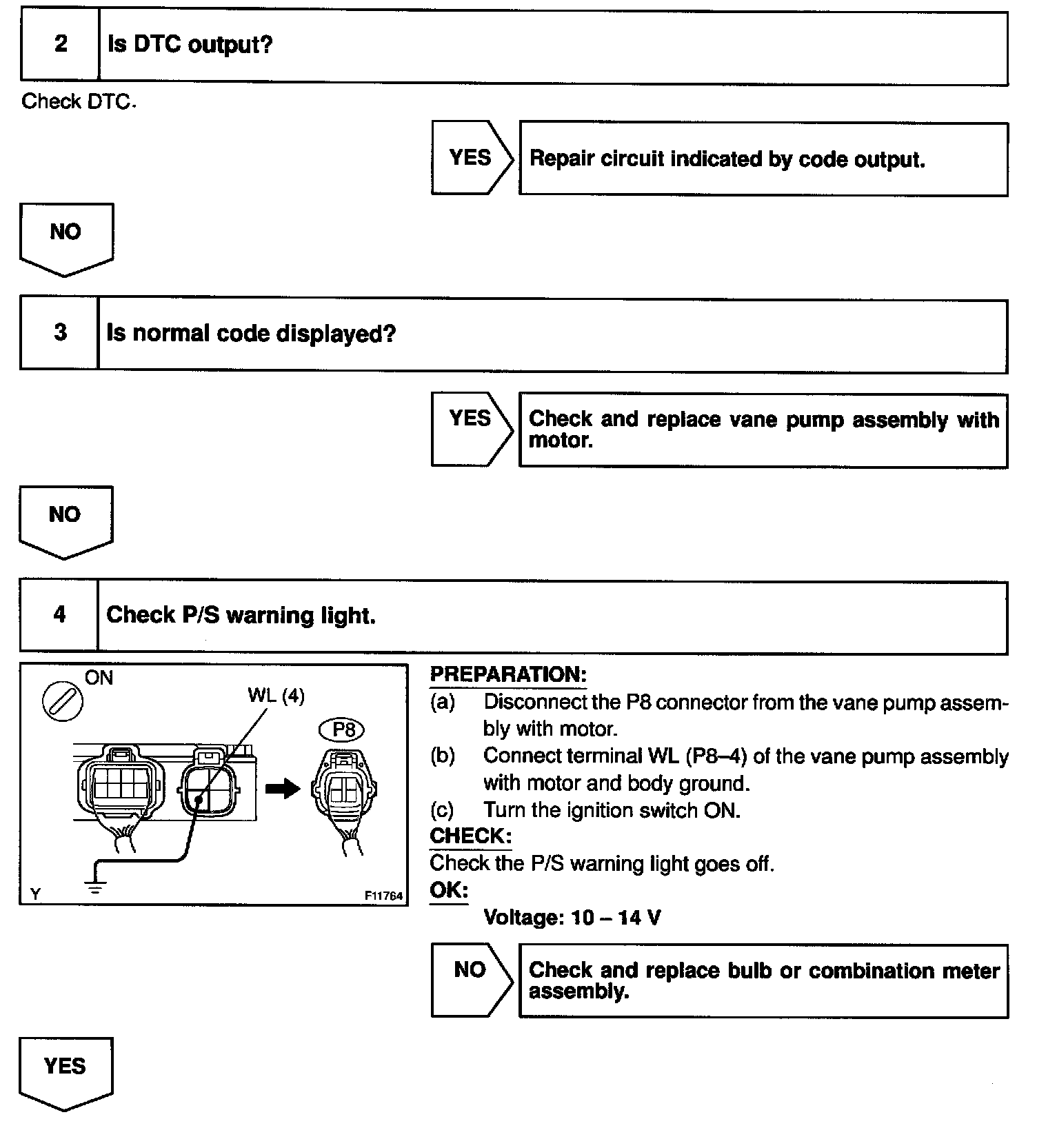 Connect terminals Tc and CG of the DLC3 to make the P/S warning light blink and output the DTC.