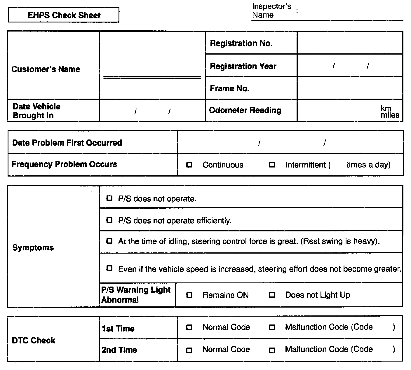 EHPS Check Sheet: