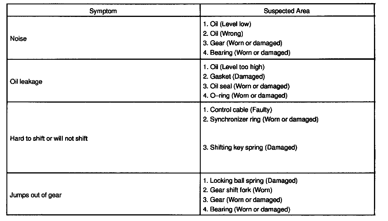 Use the table to help you find the cause of the problem. The numbers indicate the priority of the likely cause of the problem. Check each part in order. If necessary, replace parts.
