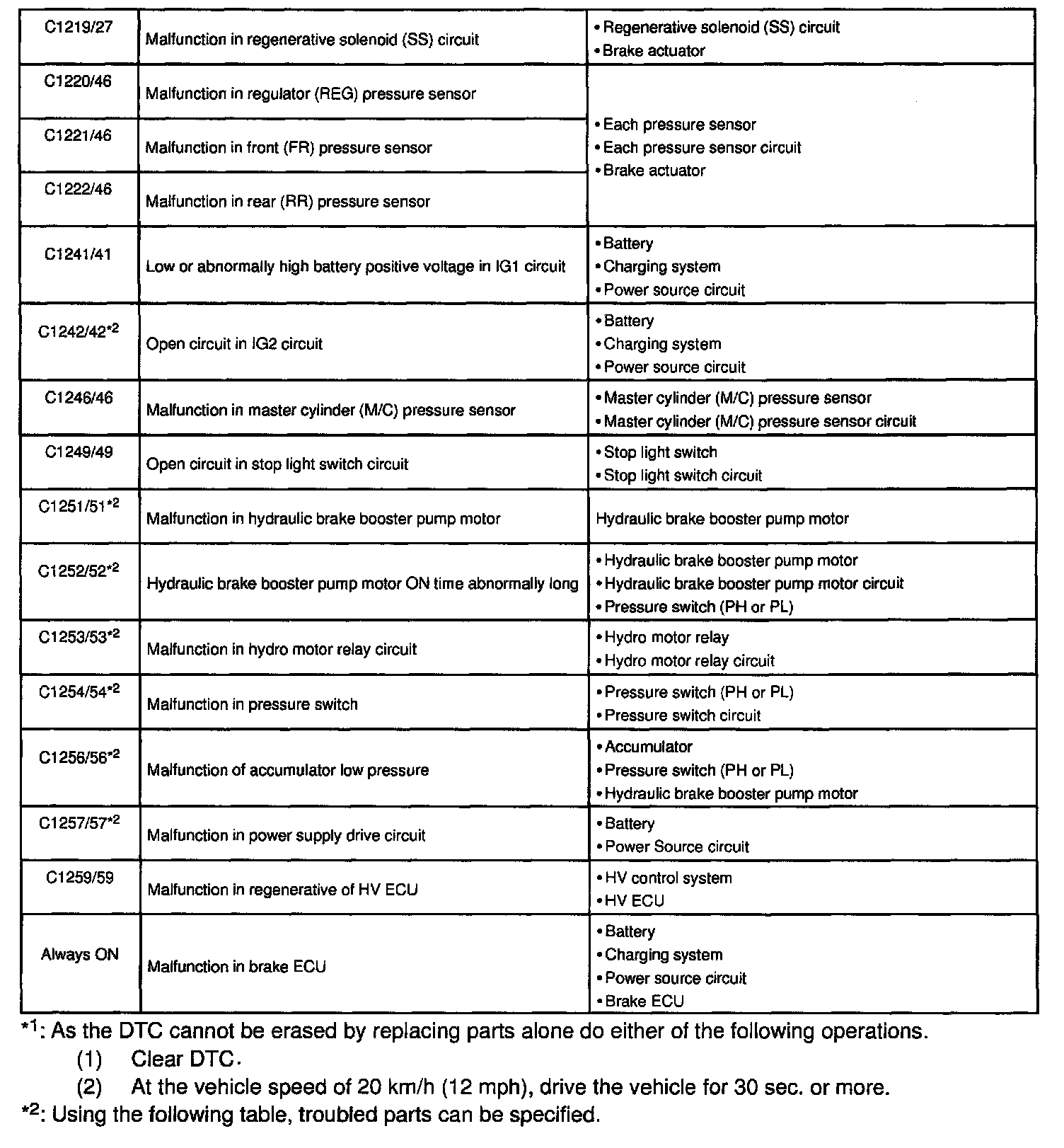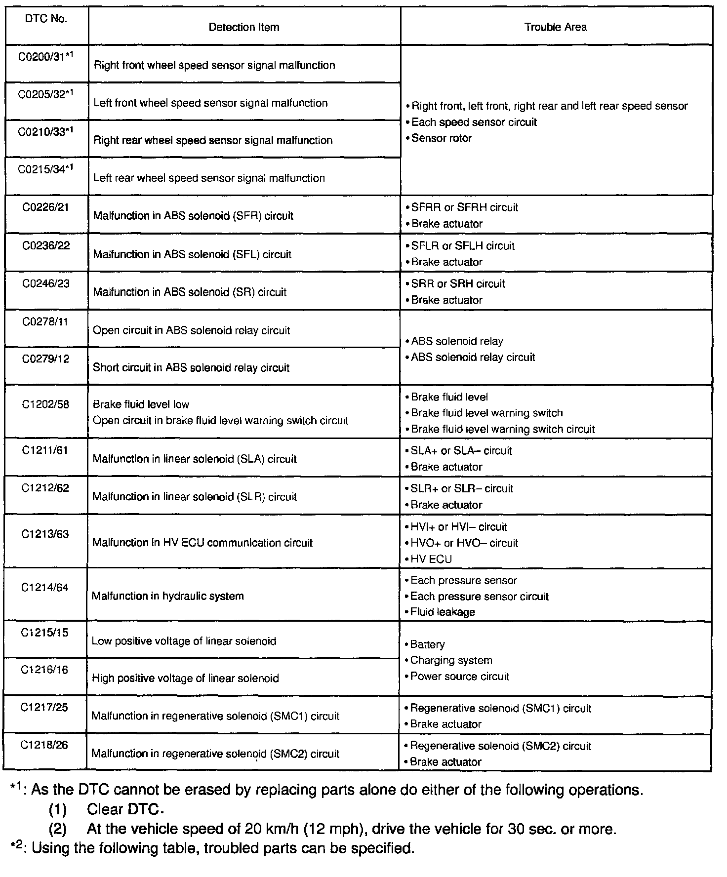 DIAGNOSTIC TROUBLE CODE CHARTC0200 - C1218: