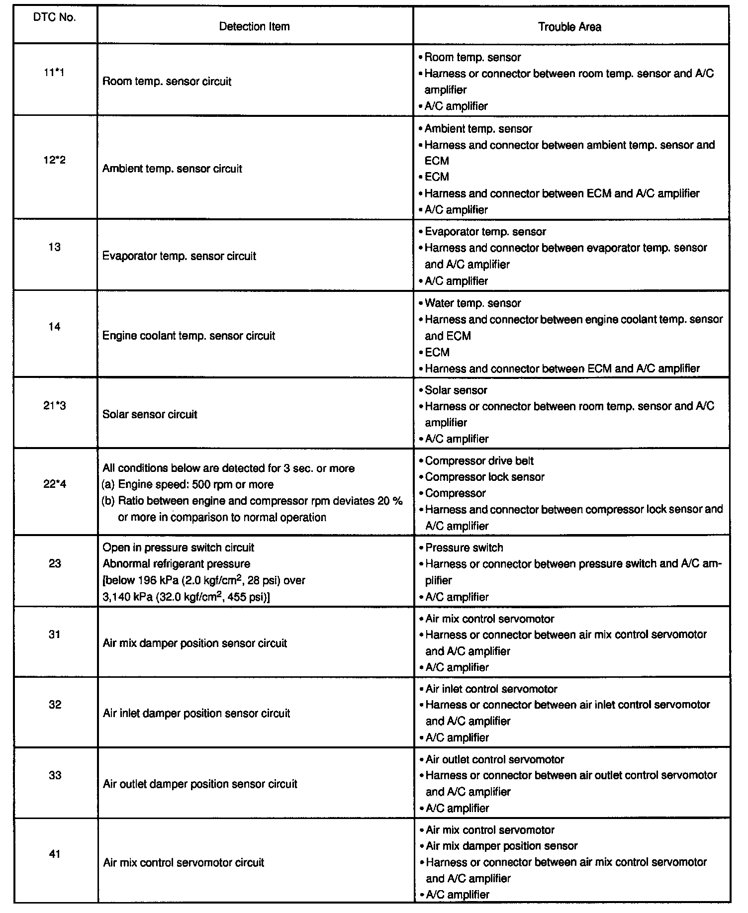 - *1: If the room temperature. is approx. -18.6 °C (-3.7 °F) or lower, trouble code 11 may be output even though the system is normal.