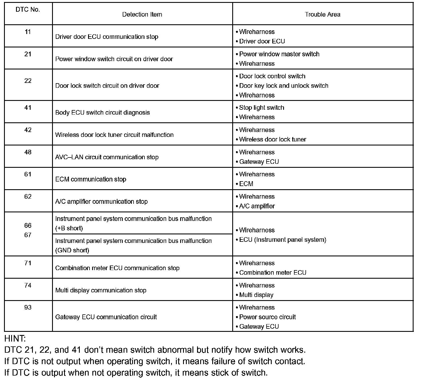 If a malfunction code is displayed during the DTC check, check the circuit listed for that code in the table provided (Proceed to the code chart for that circuit).