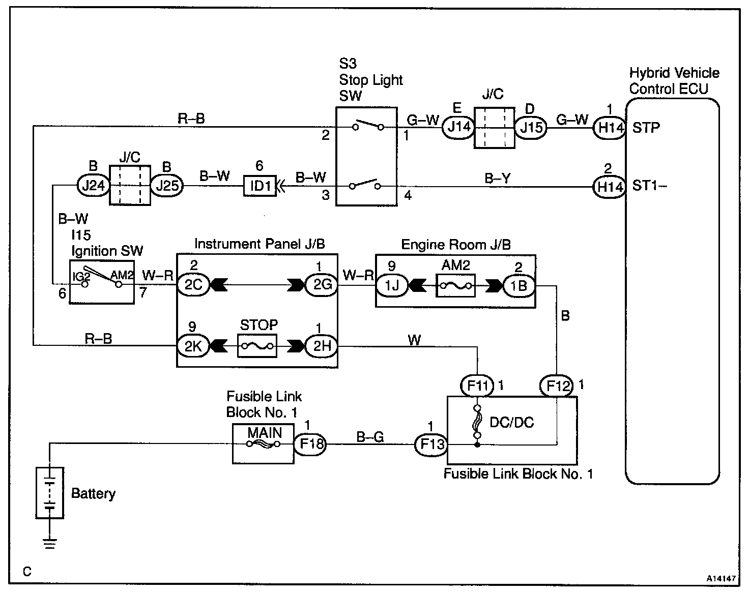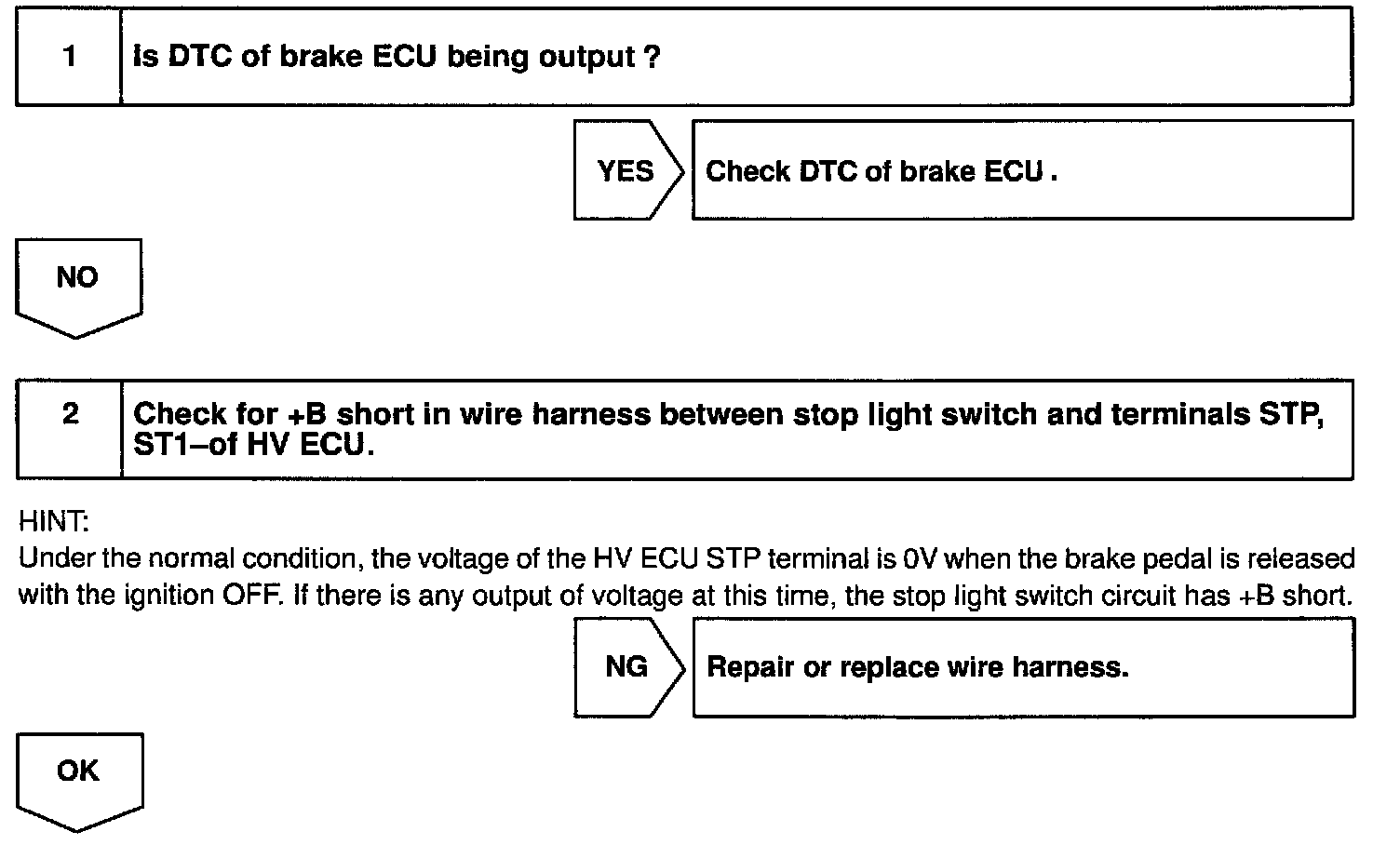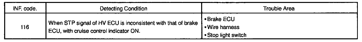 The HV ECU and the brake ECU monitor the same STP signal. If any difference is identified between both received signals, the HV ECU outputs an error.