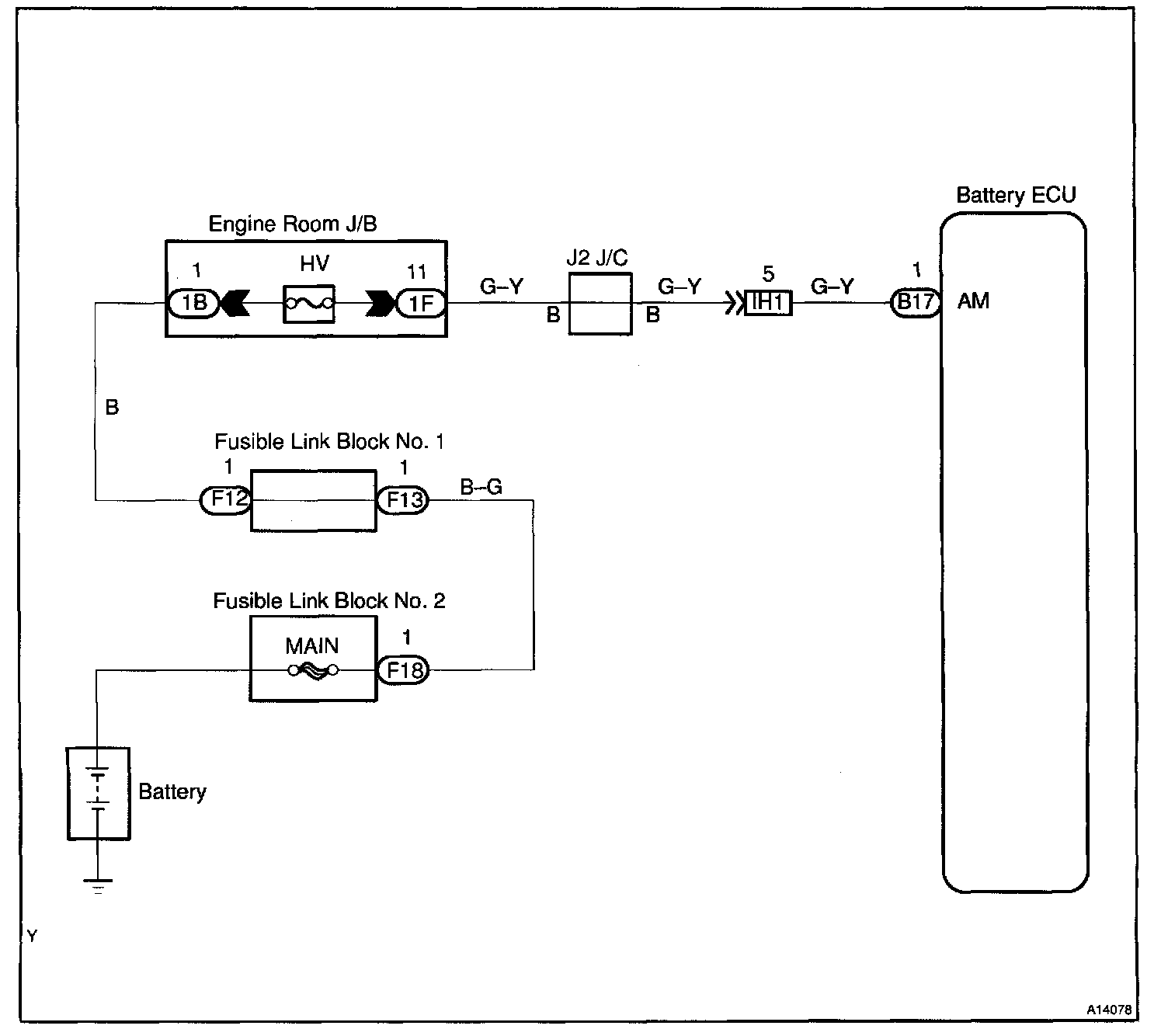 Battery positive voltage is supplied to terminal AM of the Battery ECU even when the ignition switch is OFF to read the DTC memory and freeze frame data adaptive control value memory, etc.