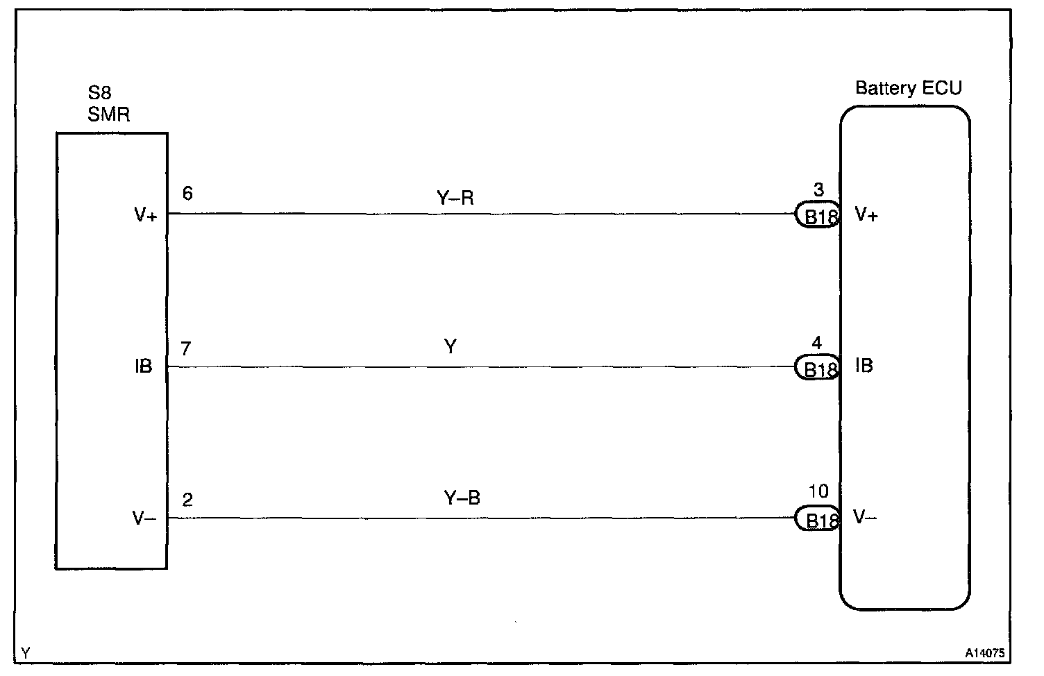 The battery ECU inputs signals from a current sensor in the system main relay and controls the output current.