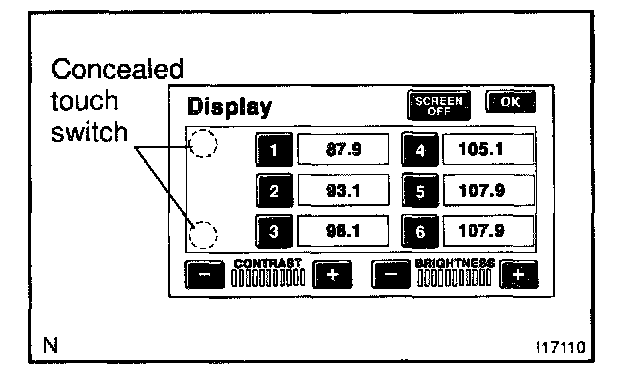 3. Press the Display switch to display the Screen Adjustment screen.