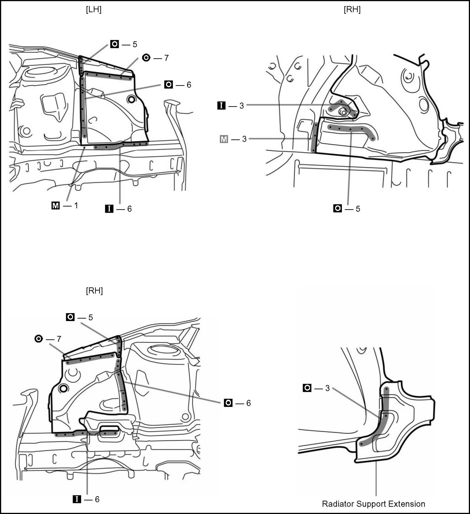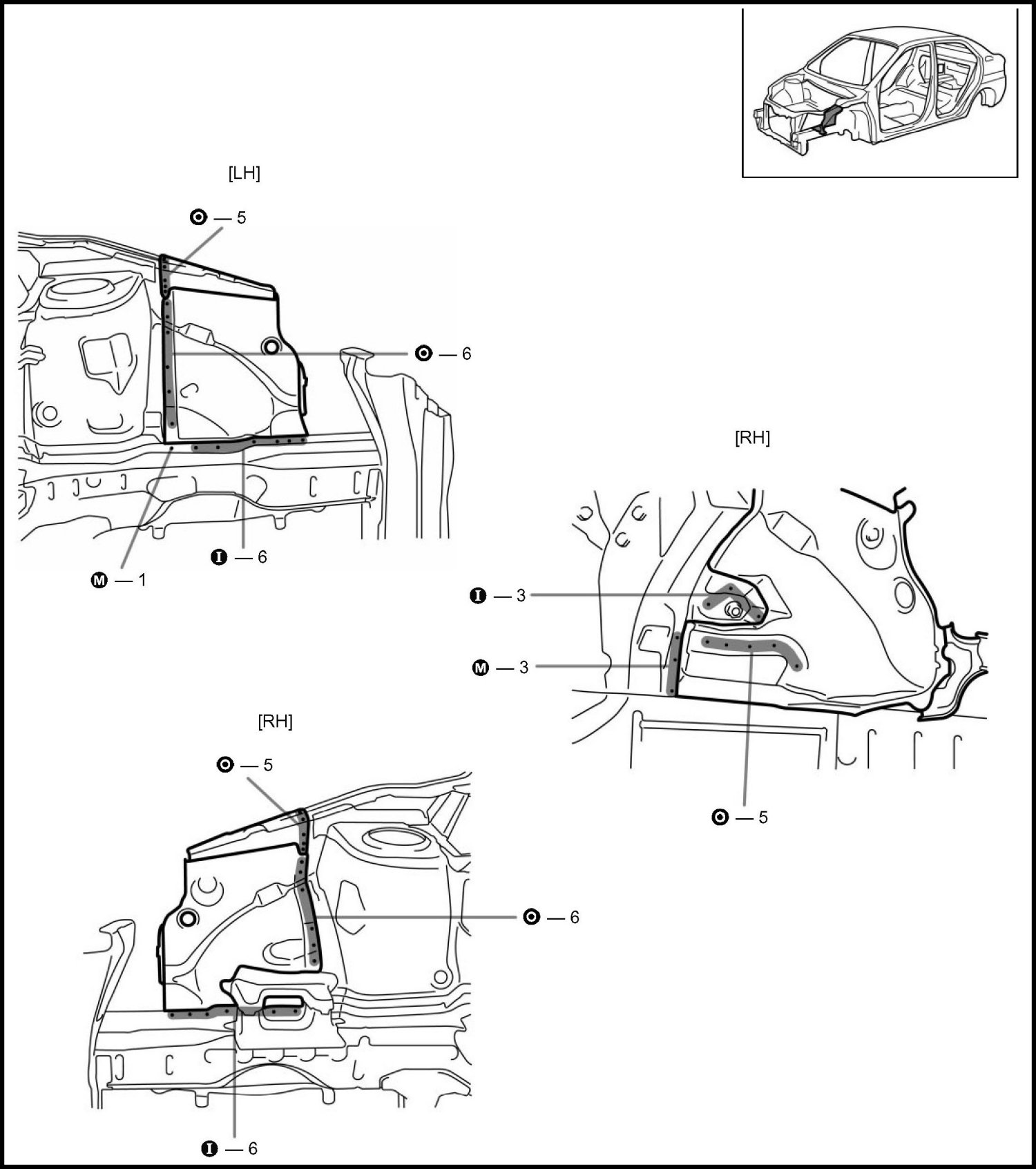 1. Temporarily install the new parts and measure each part in accordance with the body dimension diagram.