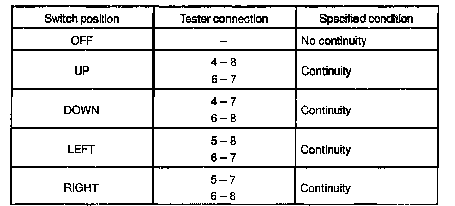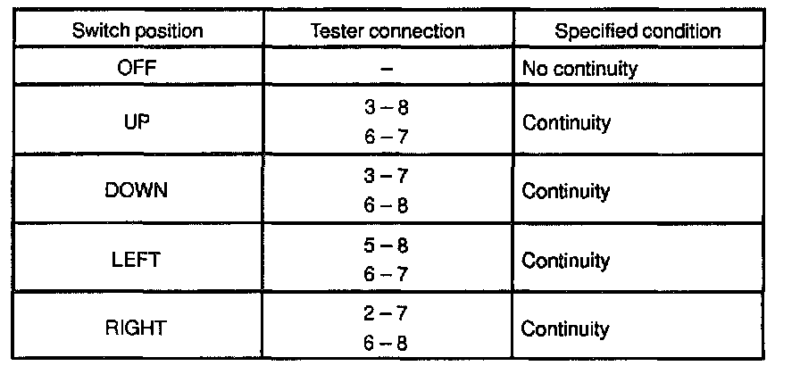If continuity is not as specified, replace the switch.