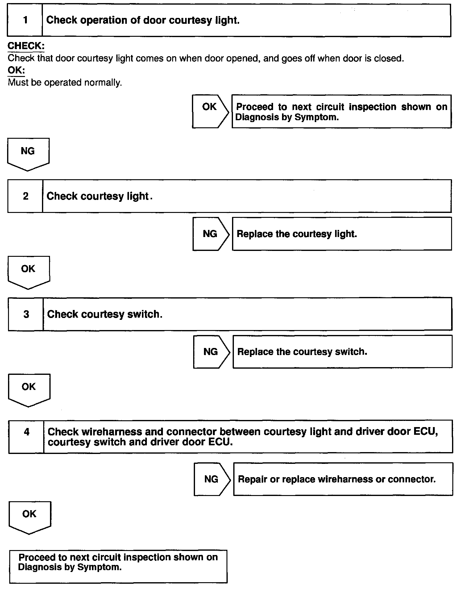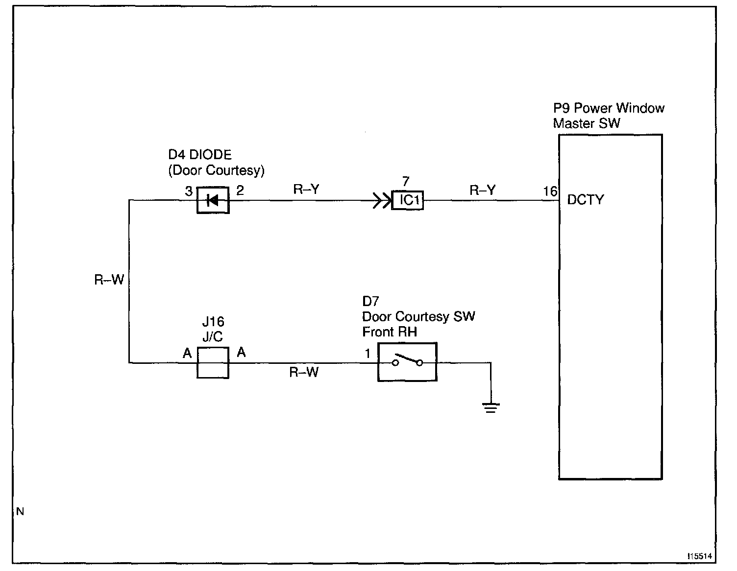 The door courtesy switch goes on when the door is opened and goes off when door is closed.