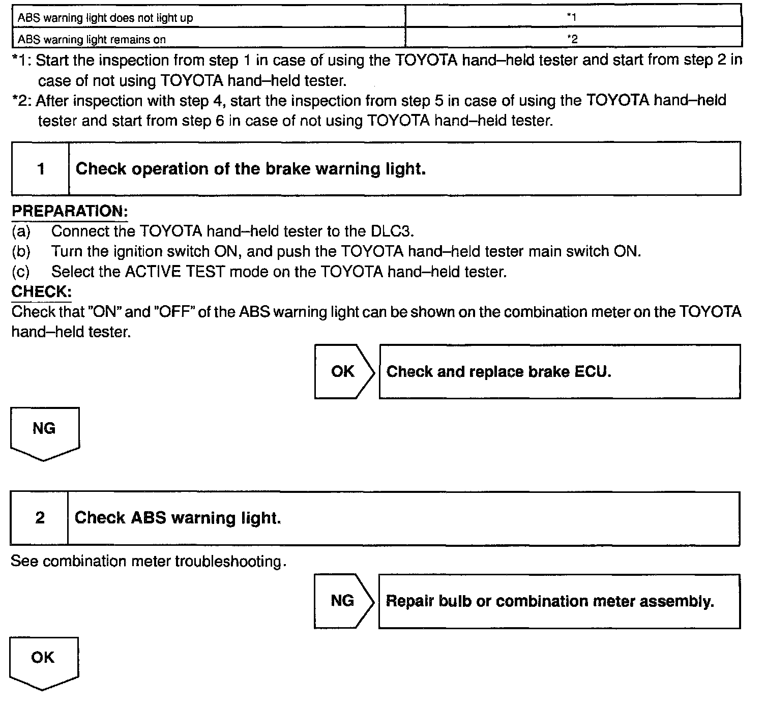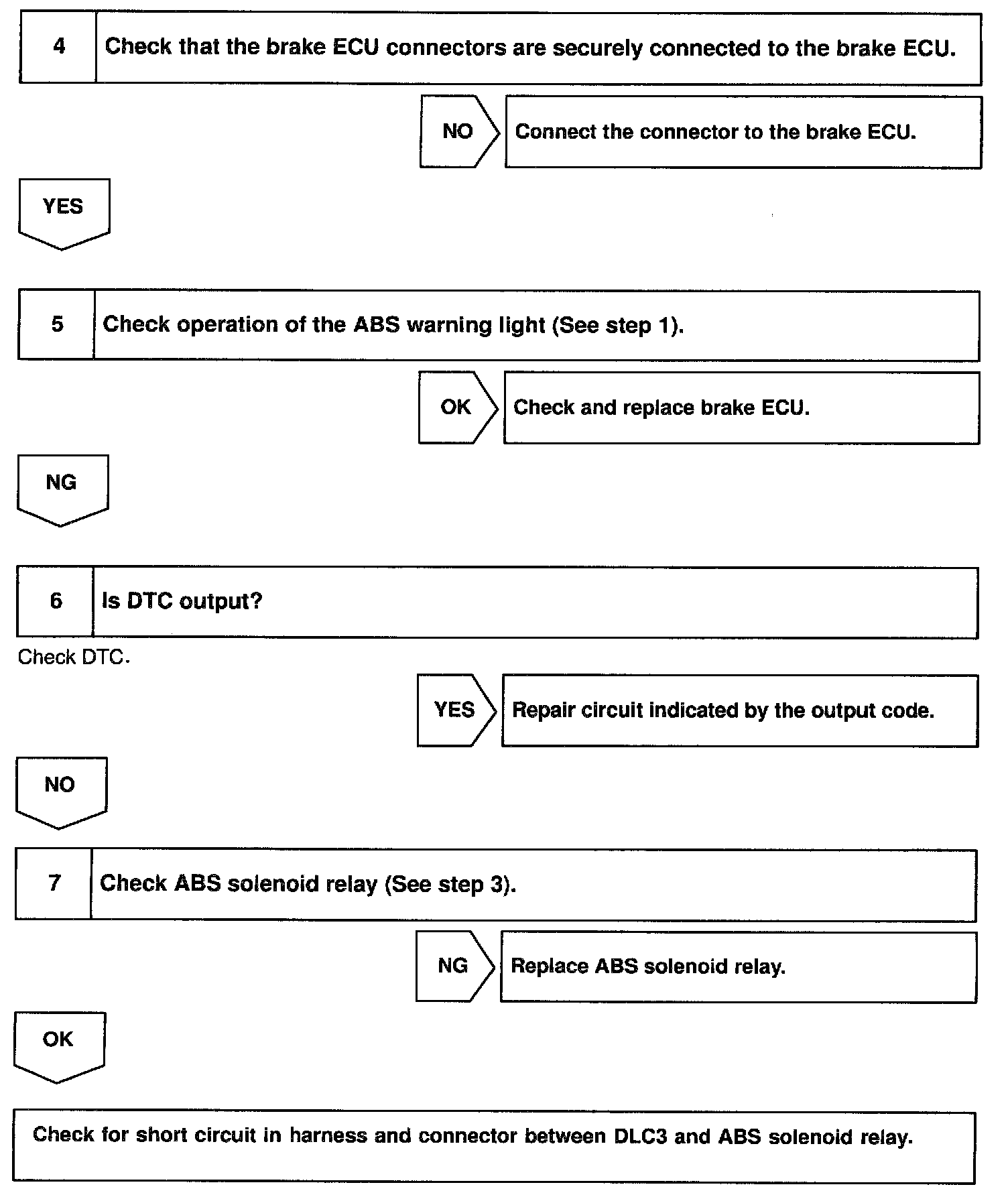CIRCUIT DESCRIPTIONIf the ECU detects trouble, it lights the ABS warning light while at the same time prohibiting ABS control. At this time, the ECU records a DTC in memory.